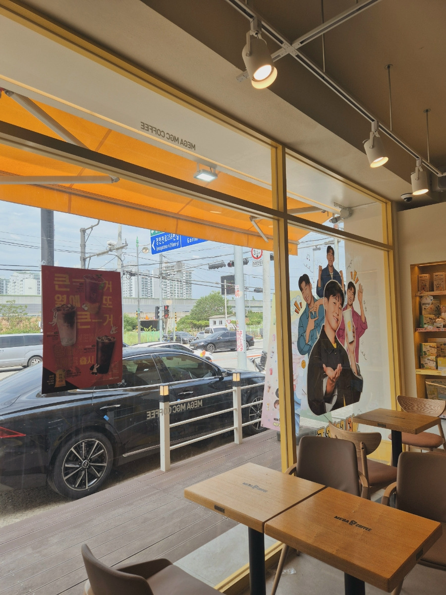 메가커피 내부 안에는 넓은 테이블로 이루어져 있어서 매장에서 먹기에도 좋아요.